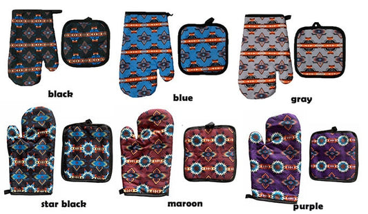 southwest Native style design Kitchen Apron, Glove, and Potholder Fish with Pockets
