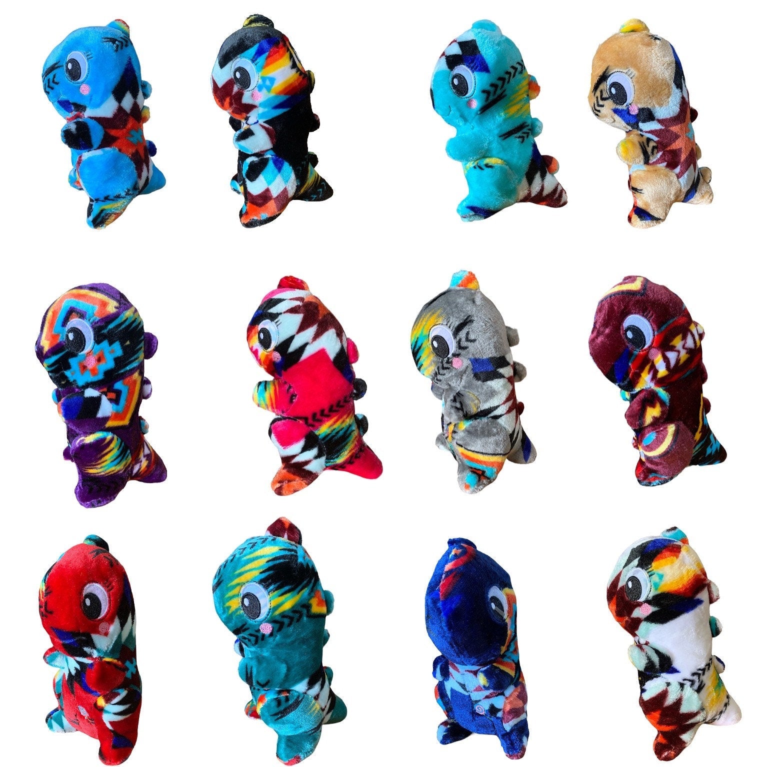 The Southwest Native Design Dinosaur Super Soft Stuffed Animal Toy is a charming and cuddly toy that children of all ages will adore. Handmade with meticulous attention to detail, this toy showcases a unique Southwest Native design, adding a touch of cultural charm to any playtime. Its exterior is crafted from super soft plush blanket material, ensuring a texture that is incredibly comforting to touch. this toy is the perfect size for hugging and snuggling.